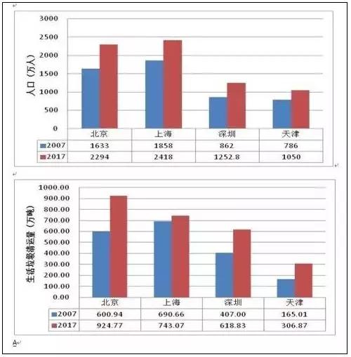 國內的數據本該可比,實際可比性很差。比如深圳的生活垃圾清運量是天津的兩倍,而統計的人口深圳只比天津多20%,深圳的實際居住人口恐怕明顯被低估。上海的生活垃圾清運量在2013年以前一直比北京高,2013年以后無緣無故地降下來了,是什么因素,是否有人為因素?天津的人均生活垃圾清運量少,并不是真的產生少,而是收集范圍沒有全覆蓋或者沒有統計;上海的人均生活垃圾清運量少,并不是真的產生量少;北京市人均生活垃圾高達1.1千克/人·日,明顯高于天津、上海,這里還不包括廢品,是居住人口沒有充分統計,還是生活垃圾量重復統計,比如綜合處理廠的生活垃圾最終在填埋場或焚燒廠還要統計一次?