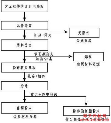 圖1日本NEC公司研發的廢棄電路板回收流程