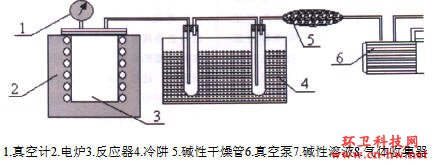 目前大部分廢棄電路板的熱解研究是在氮氣氣氛下進行的,而在真空條件下對廢棄電路板進行熱解的研究很少。真空熱解與以惰性氣氛下進行的熱解技術相比具有很多優點,比如真空條件下能減少二次裂解反應的發生,降低樣品的熱分解溫度,且避免了引入載氣,從而降低了回收成本。中南大學丘克強課題組研發了處理廢棄電路板的新技術,其中就包括了廢棄電路板有機樹脂的真空熱解分離技術,其熱解裝置如圖5所示。