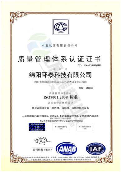 2014年獲得“中鑒認證有限公司”質量管理體系認證證書