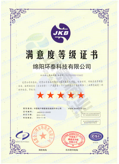 2014年獲得“成都金口碑市場調查有限公司”五星滿意度等級證書