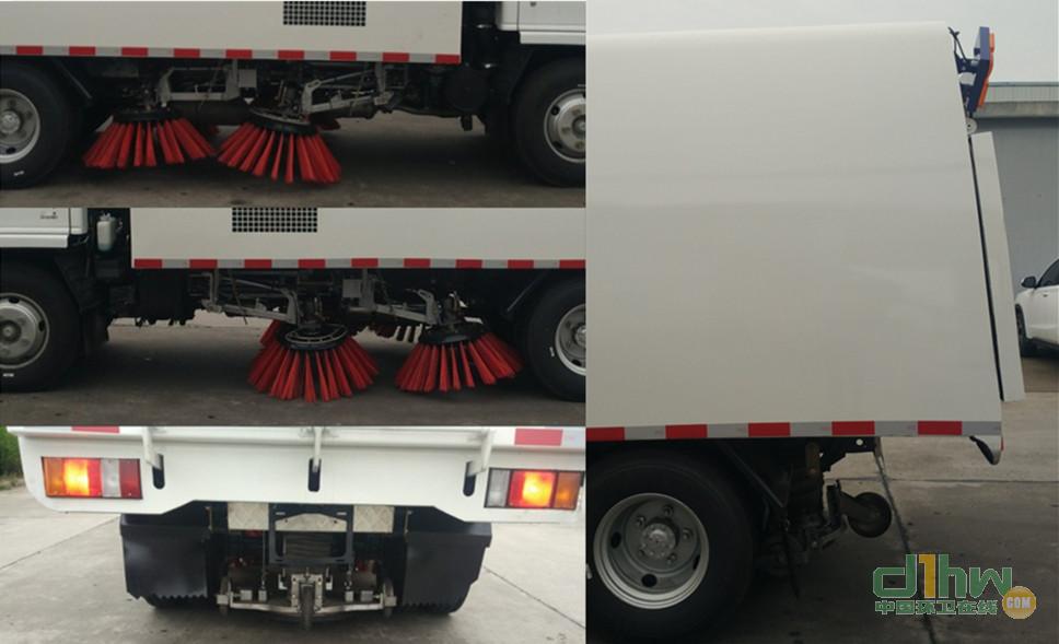 采用3815mm軸距底盤,側面防護裝置和后防護裝置材料為Q235,連接方式均為螺栓連接,后部防護裝置的斷面尺寸為100×30mm,離地高度為330mm.ABS型號/生產廠家分別是:ABS 8.1 EA106/博世汽車部件(蘇州)有限公司,ABS 8/克諾爾制動設備(上海)有限公司.該車具備垃圾箱、清掃機構、抽吸機構等裝置,具有清掃路面的功能.