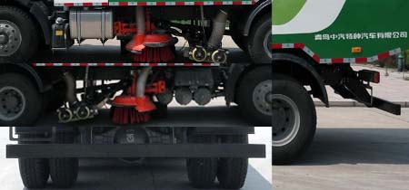 采用3815mm軸距底盤,側面防護裝置和后防護裝置材料為Q235,連接方式均為螺栓連接,后部防護裝置的斷面尺寸為100×30mm,離地高度為330mm.ABS型號/生產廠家分別是:ABS 8.1 EA106/博世汽車部件(蘇州)有限公司,ABS 8/克諾爾制動設備(上海)有限公司.該車具備垃圾箱、清掃機構、抽吸機構等裝置,具有清掃路面的功能.