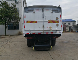 清掃能力強,清掃速度快。噪聲低;作業油耗低;“中置四盤刷-后置吸嘴”結構為中聯首創,方便道路左右兩邊路沿清掃;副發動機與風機采用離心式自動離合器連接裝置,可保證副發動機在啟動和停機時與風機自動脫離,提高副發動機的工作可靠性和使用壽命,操作更簡化;垃圾箱內膽采用單層結構,內壁為不銹鋼、光滑不銹,具備高強度骨架,清掃作業時無垃圾吸附。可在10分鐘內完成垃圾箱的清洗工作;前清掃裝置具有防碰撞避讓功能,可保證清掃裝置作業時不碰損。全浮動吸嘴,能隨地面狀況自動找平,清掃能力大,清掃速度快。