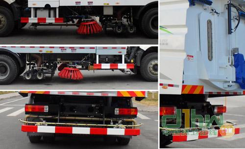 創新開發的一款集掃路車和高壓清洗車功能于一體的高效環衛設備。該車機動性能好,油耗低、噪聲小、效率高,深受廣大用戶青睞。特別適用于城市道路路面、道路側石上平面及立面的清洗,并且能回收清洗污水。它擁有多項專利,技術處于國內外領先地位。該車采用高壓力、低流量水流沖洗,并結合掃刷刷洗路面、吸嘴收集污水,實現了強力去污、高效節水、污物及污水回收的目的。作業時,外伸至道路側石的左(右)旋轉洗刷配合低壓水首先對路面、道路側石上平面及立面進行一次刷洗。同時緊隨其后的中置超寬吸嘴中的內置長排噴桿和左右兩側的旋轉噴桿的高壓水,對路面、道路側石上平面及立面進行第二次沖洗,兩側噴桿形成的“V”型工作夾角,使清洗后的污水自動流向中置超寬吸嘴,將污水匯集至吸嘴口、吸入污水箱。經過兩次清洗后的道路路面、道路側石上平面及立面可達到無垃圾、無灰塵、無污漬、無污水的效果,從而大大提高了城市道路的清潔質量