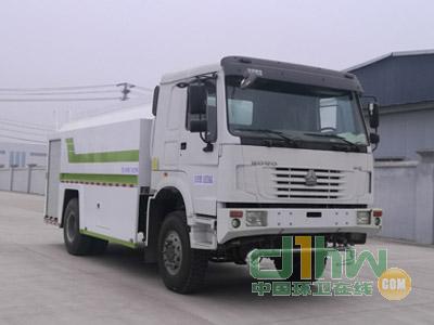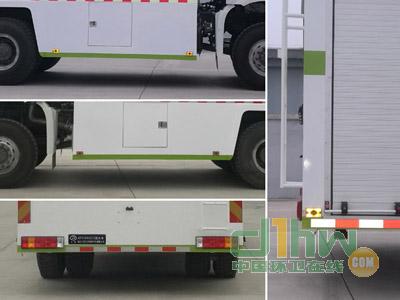 僅采用4300mm軸距;罐體有效容積7.9立方米;罐體外形尺寸(長×長軸×短軸)(mm):4070×2090×1390;ABS系統型號為4460046300,生產企業為威伯科汽車控制系統(中國)有限公司;側面防護及后下部防護裝置材料材質:Q235,均為整體式結構;后下部防護裝置離地高度:490mm;主要專用裝置為罐體,用于灑水和園林綠化.
