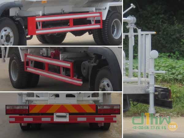 隨底盤選裝駕駛室;罐體有效容積7.9立方米;罐體外形尺寸(長×長軸×短軸)(mm):4200×1900×1320;外形尺寸長/前懸對應關系(mm)為:7120/1250,7315/1445;ABS生產廠家;東科克諾爾商用車制動系統(十堰)有限公司,型號:3631010-C2000;側面防護及后下部防護裝置材料材質:Q235,連接方式:焊接加螺栓連接;后下部防護裝置斷面尺寸(寬×高):50×120(mm),離地高度:500mm.