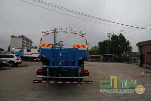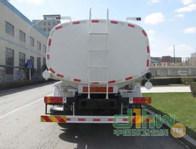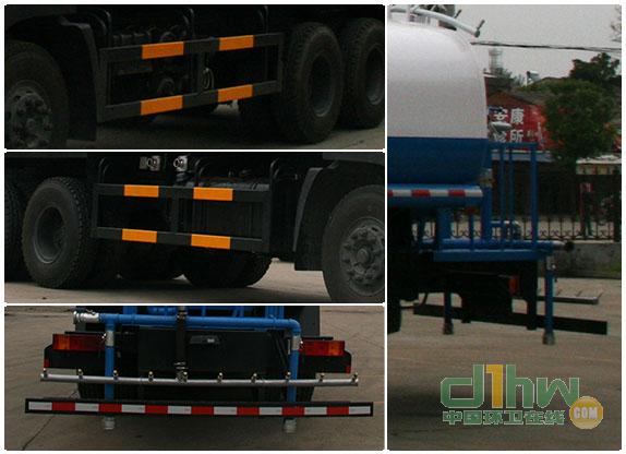 罐體有效容積:13.6立方米,介質:水,密度:1000千克/立方米,罐體尺寸:長6600毫米,長軸2080毫米,短軸1480毫米.側、后防護裝置材料材質:Q235B,側、后防護均用螺栓連接,后部防護裝置斷面尺寸(寬×高)60×100(mm),后部防護離地高度:540mm.僅用4350+1300軸距,選裝不帶后工作臺時整車長為9550毫米,隨底盤選裝高頂駕駛室.ABS型號:ABS-E 4S/4M,生產廠家:威伯科汽車控制系統(中國)有限公司.