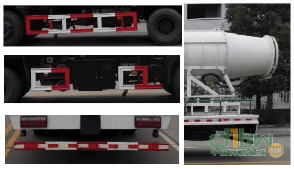 | 該車主要用于城市道路以及公園路面清掃,沖洗作業,由封閉式車箱,高壓清洗系統,風機,掃盤,吸盤等組成;隨底盤選裝前面罩以及前霧燈;防護材料:Q235A,連接方式:左右側面防護豁免,后下部防護與副梁采用焊接連接,后下部防護尺寸:50×150(mm),離地面高度350mm;ABS型號:ABS/ASR-24V-4S/4M,ABS型號廠家:襄陽東風隆誠機械有限責任公司;文字噴涂位置和車輛顏色可變化,前懸與軸距與后懸對應關系(mm):1130/3800/2100,1150/3800/2080 | |||