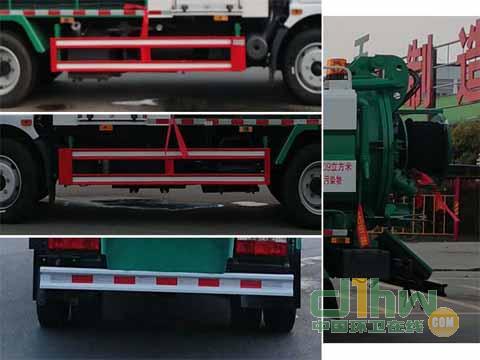 罐體有效容積6.09立方米,運輸介質:液態污染物,密度800千克/每立方米.罐體外形尺寸(長×直徑)(mm):4150×1400.選裝兩側結構及正后結構.選裝兩側結構及正后結構時引起的整備質量在5%范圍內.側防護材料為Q235,聯接方式為連接支架固焊在付車架大梁上.后防護材料為Q235,連接方式:用結構連接件固焊在主車后端,后部防護裝置斷面尺寸(寬×高)60×120(mm),后部防護離地高度:450(mm).選裝前面罩,前保險杠,前組合燈具.清洗吸污兩種功能不同時使用.ABS系統生產廠家,型號 :襄陽東風隆誠機械有限責任公司,ABS/ASR-24V-4S/4M.僅采用3800(mm)軸距底盤.