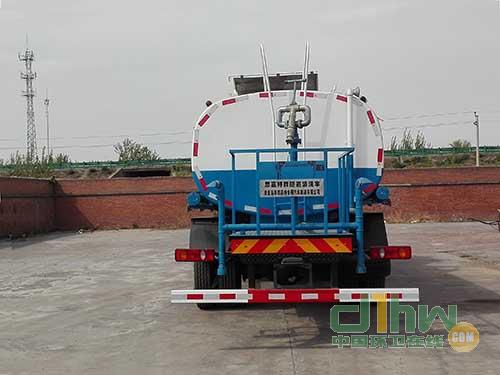 采用自吸式雙級離心泵,效率高,揚程大,水泵由底盤發動機取力傳動;自吸管路采用了專門的快速接頭及止回閥,自吸高度6.5m,水平自吸距離>10米(選配);具有新穎的前沖(水)、后灑(水)功能,前后采用不同特點的噴嘴,后噴嘴適應于灑水降溫,前噴嘴沖洗壓力大,可一次沖洗6條車道;前沖洗嘴由電、氣控制,操作方便靈活;水罐容積大,工作時間長;具有噴霧降塵功能;具有輔助消防功能、自吸功能(選配);可選裝綠化澆灌功能。