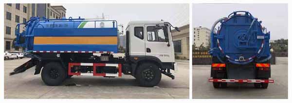 1.應在后部安裝車身反光標識和后尾標志板.2.隨底盤選裝燈具保險杠等新風格.罐體側部選裝工具箱,罐體兩側選裝管箱.3.介質: 液態懸浮污物,密度800千克/立方米.4.罐體有效容積8.9 立方米時,整車長/軸距/前懸/后懸/罐體外形尺寸(直段長×直徑)/總質量/整備質量/額定載質量對應關系:7265/3950/1250/2065/3800×1700/16000/9005/6865(準乘人數2人),6800(準乘人數3人).罐體有效容積9.5 立方米時,整車長/軸距/前懸/后懸/罐體外形尺寸(直段長×直徑)/總質量/整備質量/額定載質量對應關系:7815/4500/1450/1865/4330×1700/16000/8505/7365 (準乘人數2人),7300 (準乘人數3人).5.側后防護裝置材料材質:Q235,側防護焊接加螺栓連接,后防護焊接加螺栓連接,后部防護裝置斷面尺寸(寬×高)50×100(mm),后部防護離地高度:490mm.6.ABS型號為3631010-C2000,生產廠家為東科克諾爾商用車制動系統(十堰)有限公司.7.僅配裝輪胎:10.00-20 16PR,10.00R20 16PR,9.00R20 16PR,10R22.5 16PR,275/80R22.5 16PR.