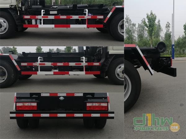 隨底盤選裝前霧燈,不同顏色前保險杠,不同顏色格柵,不同顏色后視鏡,該車應在后部,側面安裝車身反光標識;為環衛車輛專用車輛,僅用于環衛部門裝載運輸垃圾。
