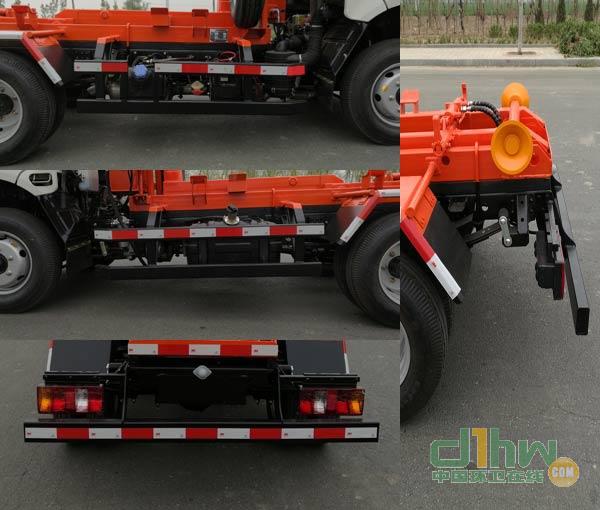 隨底盤選裝前霧燈,不同顏色前保險杠,不同顏色格柵,不同顏色后視鏡,該車應在后部,側面安裝車身反光標識;為環衛車輛專用車輛,僅用于環衛部門裝載運輸垃圾。