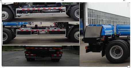 1.應在后部安裝車身反光標識和后尾標志板.2.僅選配軸距4500mm底盤,該車型有三種配置,參數對應關系(長度/前懸/后懸/整備質量/額定載質量/接近角/離去角):基本型7375/1445/1430/6190/11615/21/23;長型污水槽7460/1445/1515/6340/11465/21/22,翻蓋污水槽7490/1445/1545/6490/11315/21/22;3.側面防護和后下部防護裝置材質:Q235A,與底盤大梁連接方式:螺栓連接;4.側面防護裝置截面尺寸:120×40mm,后下部防護裝置截面尺寸:160×50mm,離地高度:470mm.5.應安裝具有衛星定位功能的行駛記錄儀.6.隨底盤可選裝駕駛前臉,遮陽罩;7.ABS型號/企業: ABS-E 4S/4M/ 威伯科汽車控制系統有限公司.8.僅配裝兩款發動機,發動機最大凈功率(KW)/油耗(L/100km):143/27.84 (配YC6JA200-50) ,149/27.99(配ISD210 50).9.配裝輪胎10.00R20,10.00-20;10.可載運的垃圾廂尺寸為(長×寬×高):4935×2400×2100,車廂頂部封閉不可開啟。
