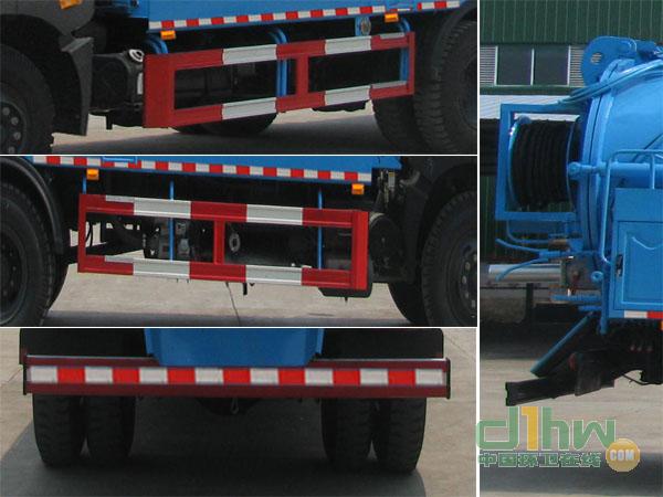 隨底盤選裝駕駛室.罐體有效容積:9.84立方米,運輸介質:液態污染物,密度:0.8噸/立方米.當軸距為3950(mm)時,整車長為7400(mm),罐體外形尺寸(直段長×直徑)(mm):4000×1600.當軸距為4200(mm)時,整車長為7650(mm),罐體外形尺寸(直段長×直徑)(mm):4200×1600.當軸距為4500(mm)時,整車長為7950(mm),罐體外形尺寸(直段長×直徑)(mm):4500×1600.當軸距為4700(mm),時整車長為8150(mm),罐體外形尺寸(直段長×直徑)(mm):4700×1600.當前懸為1250(mm)時,對應軸距3950(mm),4200(mm),4500(mm),4700(mm),對應后懸為2200(mm).當前懸為1450(mm)時,對應軸距3950(mm),4200(mm),4500(mm),4700(mm),對應后懸為2000(mm).側防護材料為Q235,聯接方式為連接支架固焊在付車架大梁上.后防護材料為Q235,連接方式:用結構連接件固焊在主車后端,后部防護裝置斷面尺寸(寬×高)60×120(mm),后部防護離地高度:420(mm).裝有具有衛星定位的行車記錄儀.ABS型號為:3631010-C2000,生產廠家為:東科克諾爾商用車制動系統(十堰)有限公司.僅采用輪胎9.00R20,10.00-20,10.00R20,10R22.5