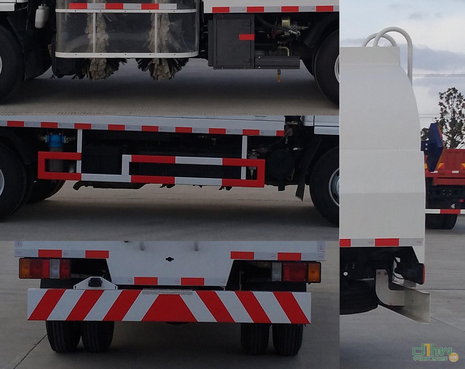 采用自吸式雙級離心泵,效率高,揚程大,水泵由底盤發動機取力傳動;自吸管路采用了專門的快速接頭及止回閥,自吸高度6.5m,水平自吸距離>10米(選配);具有新穎的前沖(水)、后灑(水)功能,前后采用不同特點的噴嘴,后噴嘴適應于灑水降溫,前噴嘴沖洗壓力大,可一次沖洗6條車道;前沖洗嘴由電、氣控制,操作方便靈活;水罐容積大,工作時間長;具有噴霧降塵功能;具有輔助消防功能、自吸功能(選配);可選裝綠化澆灌功能。
