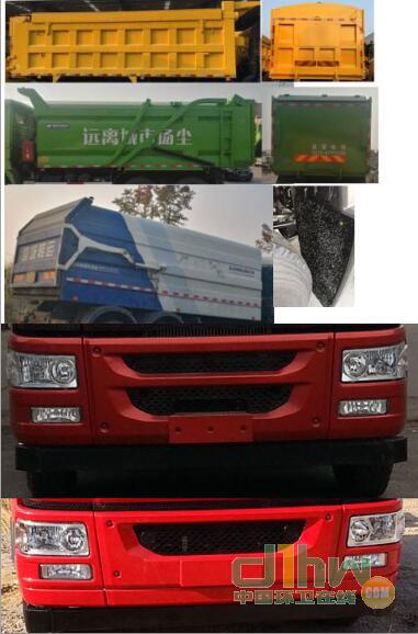 選裝環保上蓋.選裝貨箱,選裝新結構的貨箱.僅結構發生變化.選裝新結構的保險杠.選裝新結構的擋泥板.貨廂自卸方式為后卸.側防護及后下部防護裝置的材質為Q325鋼,連接方式為螺栓連接,后部防護離地高度440mm,斷面尺寸為130×80mm. 安裝具有衛星定位功能的行駛記錄儀.ABS生產廠家/型號:萬安科技上海萬捷汽車控制系統有限公司/VIE ABS-II.油耗值(L/100km)41.5,41.7,42.0,42.0,42.2,44.2,44.3分別對應發動機WP10.270E53,WP10.310E53,CA6DL1-32E5,CA6DL1-29E5,WP10.350E53,WP10H375E50,WP8.340E51.整車長度mm/軸距mm/貨廂長度mm/后懸mm的對應關系為:1.9860/1900+3450+1350/7000/1785;2.10060/1900+3450+1350/7200/1985;3.10010/1900+3650+1350/7000/1735;4.10110/1900+3650+1350/7200/1835.僅貨箱尺寸和結構變化以及環保上蓋引起的質量參數的變化小于3%,可以忽略不計.僅選裝底盤的鋼板彈簧:12/12/10,3/3/10,10/10/10.前軸選裝盤式制動器.選裝限速裝置,限速89km/h.選裝高頂駕駛室.選裝新的空濾,尿素箱安裝位置.