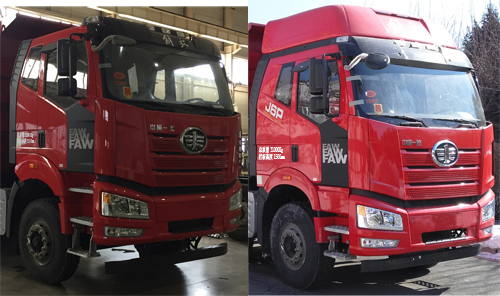 自卸方式為后卸, 隨底盤選裝高頂駕駛室、小排半駕駛室、改臉駕駛室、腳踏板、保險杠,選裝三開門、五開門、田字格、立格、船型、U形、大五開門、后部對開門、橫梁型式車箱,選裝環保上蓋,側面防護裝置的橫桿材料為Q235,螺栓連接,后下部防護裝置的橫梁材料為16MnREL,螺栓連接,斷面尺寸135×80mm,離地高度為470mm,ABS系統生產廠家:長春科密汽車制動有限公司,型號:CM4XL,安裝具有衛星定位功能的行駛記錄儀.長度尺寸對應關系:10540=1470+2100+3600+1350+2020(7600廂長),10500=1470+2100+3600+1350+1980(7400廂長),10540=1500+1950+3750+1350+1990(7600廂長),10500=1500+1950+3750+1350+1950(7400廂長).油耗申報值與發動機對應關系:43.8(CA6DL2-35E5)、45.52(CA6DL3-37E5).