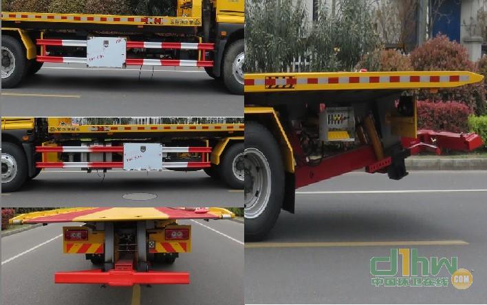 托舉質量:6700kg; 側防護與底盤縱梁間采用螺栓聯接,材質為Q235A; 后部是清障車專用裝置替代后防護, 離地高度520mm。該車安裝具有衛星定位功能的行駛記錄儀。,ABS系統型號/生產企業對應關系:44600XXXX0 /威伯科汽車控制系統(中國)有限公司;CM4XL-4S/4M/廣州科密汽車電子控制技術股份有限公司。