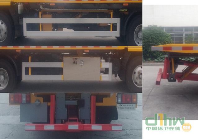 | 托舉質量:365kg;該車上裝選裝鋁平板型結構時外形尺寸不變,其整備質量為:3610kg,托舉質量為:755kg。該車隨底盤選裝駕駛室;隨底盤選裝框架視鏡。側防護與底盤縱梁間采用螺栓聯接,材質為Q235A;后防護與副車架間采用螺栓連接,材質為Q235A, 后防護斷面尺寸(mm):100×50,離地高度410mm。該車尾板收起狀態的水平長度為:150mm。ABS型號:CM4XL-4S/4M,ABS生產企業:廣州科密汽車電子控制技 |