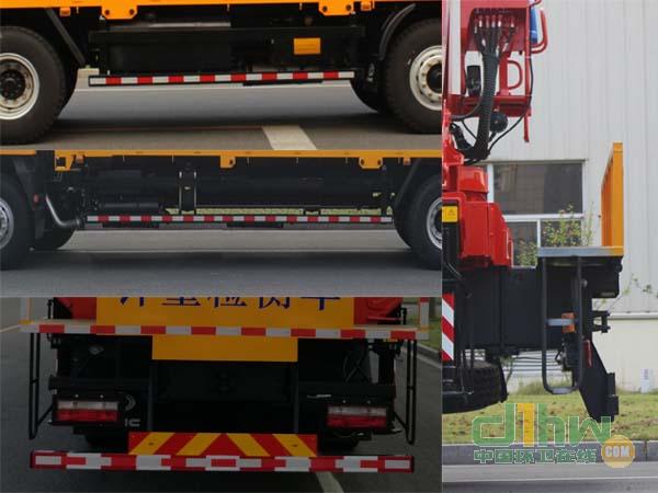 1.該車用于檢測地中衡計量準確度,選裝質量相等外形為圓形或矩形砝碼(根據汽車衡來選裝);2.上裝起重機型號/質量(kg)/最大起升載荷(kg)對應關系為:HSQZ200/5000/9000,HSQZ150/5000/7000,可選裝臂架朝向和尾部支腿,尾部操作平臺可作為選裝件;3.整車長/軸距/前懸/后懸/貨箱內部長/寬/高對應關系(mm):11990/5850+1350/1370/3420或1450/3340或1495/3295/8000或7800或7600或7400或7200/2300或2400或2450/500或600或800;11440/5220+1350/1370/3500或1450/3420或1495/3375/8000或7800或7600或7400或7200/2300或2400或2450/500或600或800.。3.隨底盤選裝駕駛室。4.側面,后下部防護裝置的材料均為:Q235鋼板,連接方式均為:螺栓連接,后下部防護裝置的斷面尺寸為:100mm×50mm,離地高度為530mm。5.應裝具有衛星定位功能的行駛記錄儀。6.ABS型號:ABS/ASR-24V-4S/4M,ABS生產企業:東風電子科技股份有限公司。
