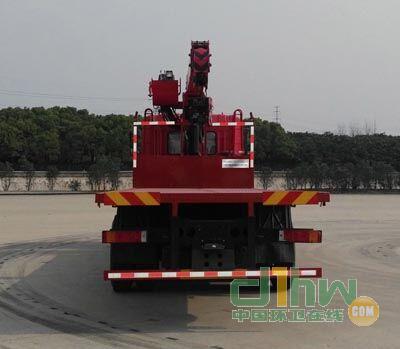 隨底盤選裝駕駛室,吊機型號/吊機重量(kg)/最大起升載荷(kg)分別為:1,(SQ10S,SQ250,QYS-10)/4400/10000;2,(SQ12S,SQ320,QYS-12)/5000/12000;僅采用5900+1300mm軸距;側防護材料Q235B,連接方式為螺栓連接;后部防護斷面尺寸(mm):120×50,后部防護離地高度(mm):500,連接方式為焊接連接;ABS生產廠家: 東科克諾爾商用車制動系統(十堰)有限公司;型號:3631010-C2000;該車安裝具有衛星定位功能的行駛記錄儀。發動機型號與油耗值對應關系(L/100km):ISD210 50/34.8,YC6JA240-50/35.4,ISB210 50/35.7。