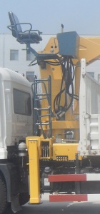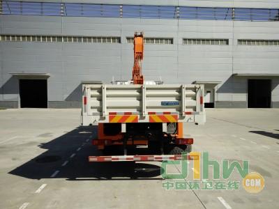 該車上裝為隨車起重機,型號、最大起升質量(kg)、自重(kg)一一對應為:QYS-6.3、6300、3200;QYS-5、5000、2420;QYS-6.3Z、6300、2800;QYS-5Z、5000、3140。側部防護和后部防護的材料均為Q235A鋼板,連接方式均為螺栓連接。后部防護的截面尺寸為100mm×50mm,離地高500毫米。隨底盤安裝ABS,ABS系統生產廠家,型號 :焦作博瑞克控制技術有限公司,J ABS.安裝具有衛星定位功能的行駛記錄儀。發動機YC4EG170-50對應的油耗值(L/100km)為26.0。選裝欄板形式。選裝高位和中位操作座椅。