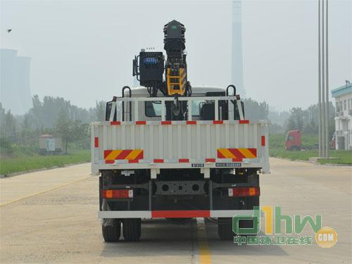 隨車起重機型號/質量(kg)/最大起升載荷(kg)對應關系為:ST220/4080/8000;ST170/2450/6300。選裝ST220隨車起重機時,整備質量(Kg)/整車高度(mm)/貨箱欄板內尺寸長度(mm)對應關系為:12050/3530/5610,5530;選裝ST170隨車起重機時,整備質量(Kg)/整車高度(mm)/貨箱欄板內尺寸長度(mm)對應關系為:10960/3460/5850。隨底盤選裝駕駛室樣式,選裝起重機高位,中位,地面操縱方式及后支腿,選裝引起的質量變化在3%以內。側面及后下部防護裝置材料為Q235A,均為螺栓連接,后下部防護裝置斷面尺寸為100mm×100mm,離地高度為500mm。該車選裝的發動機油耗申報值均為29.5L/100Km。ABS型號為4460046300,生產廠家為威伯科汽車控制系統(中國)有限公司。安裝帶衛星定位功能的行駛記錄儀。