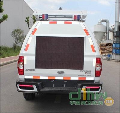 選用軸距為3155mm的底盤.選裝前圍、前后防撞杠(長5570mm,接近角/離去角為22°/20°,前懸/后懸為1050mm/1365mm)、左右側爬梯(寬2175mm).適用于一般巡邏作業要求.專用裝置:云臺、高桿照明燈、槍機、喇叭、折疊LED顯示屏、設備柜、尾門LED顯示屏(行駛過程中LED顯示屏處于關閉狀態);ABS型號:ABS9.0,ESP9.0;ABS生產企業:博世汽車部件(蘇州)有限公司,博世汽車部件(蘇州)有限公司;發動機最大凈功率為160kW.