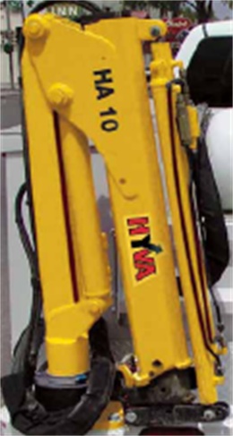 安裝折臂式起重機型號為HY08,HA10,起重機質量都為160Kg,最大起升載荷都為445Kg.該車隨整車選裝側腳踏板,選裝一種輪輞,選裝后貨箱兩側繩鉤,選裝后部支腿,選裝折臂式起重機;發動機最大凈功率99KW.ABS系統控制器型號:APG3550500G,生產廠家:浙江亞太機電股份有限公司;