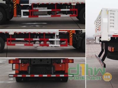 該車上裝為隨車起重機,型號、最大起升質量(kg)、自重(kg)一一對應為:QYS-6.3、6300、3200;QYS-5、5000、2420;QYS-6.3Z、6300、2800;QYS-5Z、5000、3140。側部防護和后部防護的材料均為Q235A鋼板,連接方式均為螺栓連接。后部防護的截面尺寸為100mm×50mm,離地高500毫米。隨底盤安裝ABS,ABS系統生產廠家,型號 :焦作博瑞克控制技術有限公司,J ABS.安裝具有衛星定位功能的行駛記錄儀。發動機YC4EG170-50對應的油耗值(L/100km)為26.0。選裝欄板形式。選裝高位和中位操作座椅。