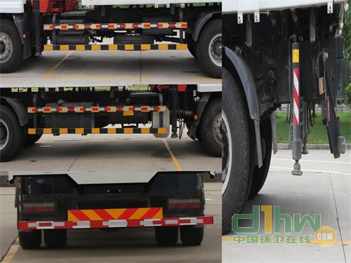 1.折疊臂式上裝起重機對應關系按照型號/質量(kg)/最大起升載荷(kg)為:HSQZ1324/3000/6300,可選裝直臂式上裝起重機:HSQ1574/3200/6300。2.外形尺寸長/軸距/后懸對應關系(mm):9000/5600/1450/1950或1370/2030,9000/4800/1450/2750或1370/2830,7400/4500/1450/1450或1370/1530。3.隨底盤選裝駕駛室。4.側面,后下部防護裝置的材料均為:Q235鋼板,連接方式均為:螺栓連接,后下部防護裝置的斷面尺寸為:100mm×50mm,離地高度為530mm。6.ABS信息:ABS型號:ABS/ASR-24V-4S/4M, ABS生產企業:東風電子科技股份有限公司。7.該車安裝具有衛星定位功能的行駛記錄儀。8.選裝貨箱樣式和操作位置。9.該車采用的YC4EG160-50,YC6J180-50,SC4H160Q5,SC4H180Q5,ISD160 50,ISD190 50,WP6.180E50,YC6J220-52油耗值均為26.6L/100km。