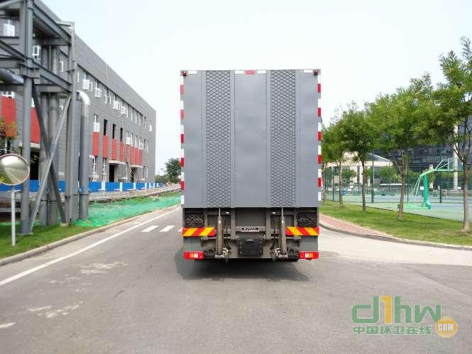 頂部封閉,不可開啟。該車左側防護裝置所用材料為鋁材質,右側防護以柴油箱和工具箱代替,與車架螺栓連接。車廂后部為折疊液壓尾板,后防護由液壓尾板代替,離地高度470mm。液壓尾板收起時水平長度為310mm。ABS 系統控制器型號EBS7 ECU生產廠:KNORR。該車用于計量衡器的檢測。專用裝置為液壓尾板、砝碼、叉車。砝碼是車中的固定檢具。選裝形狀不同質量相等的砝碼。砝碼總質量11000kg。可在車身噴涂或粘貼宣傳文字,標識。