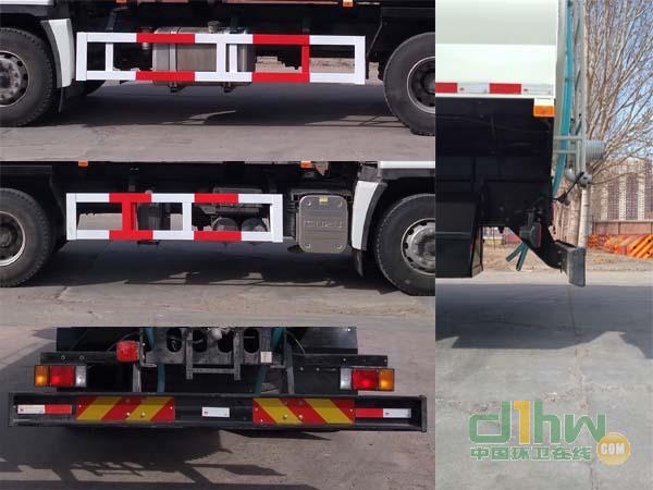 罐體有效容積:13立方米,罐體長軸:2200mm,罐體短軸:1230mm,罐體長度:7300mm;ABS及控制器型號:APG3550500H1,生產企業:浙江亞太機電股份有限公司;側面及后部防護裝置材料:Q235A,連接方式:螺栓連接;后防護斷面尺寸190mm×70mm,后防護離地高度為500mm;該車僅選用6UZ1-TCG51型發動機,對應油耗值36.82L/100km;安裝具有衛星定位功能的行駛記錄儀.