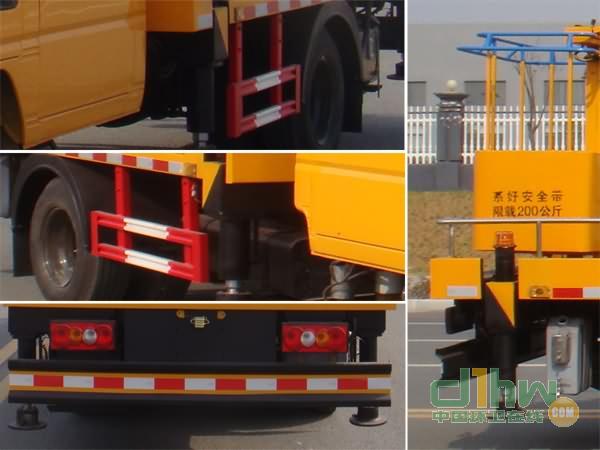 隨底盤選裝駕駛室;吊鉤為選裝件;前伸440mm;側面防護及后下部防護裝置材料材質:Q235,連接方式:焊接加螺栓連接;后下部防護裝置斷面尺寸(寬×高):30×200(mm),離地高度:485mm.ABS系統型號:APG3550500A,ABS系統生產廠家:浙江亞太機電股份有限公司.