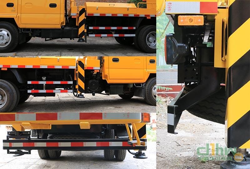 1,專用裝置后伸:920mm。2.本車型可選裝不帶吊鉤,選裝不帶吊鉤時最大總質量為6005kg,整備質量為5680kg,吊鉤最大起吊重量為1000Kg。3,側防護所用材料材質為Q235,連接方式為螺栓連接;后下部防護裝置材料:WL510,斷面尺寸130 mm×30 mm,離地高度:470mm。4,ABS型號:APG3550500A4,生產廠:浙江亞太機電股份有限公司5,輪胎型號為:7.00-16 14PR,7.00R16 14PR 6,該產品主要用于電力,路燈,交通,機場,建筑,園林,廣告等行業。
