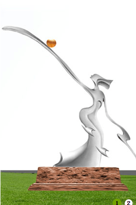 不銹鋼雕塑——紡織女。設計理念:左圖為秀山標志,右圖為抽象造型的紡織姑娘,寓意秀山歡迎你。安裝地點:瀏陽秀山