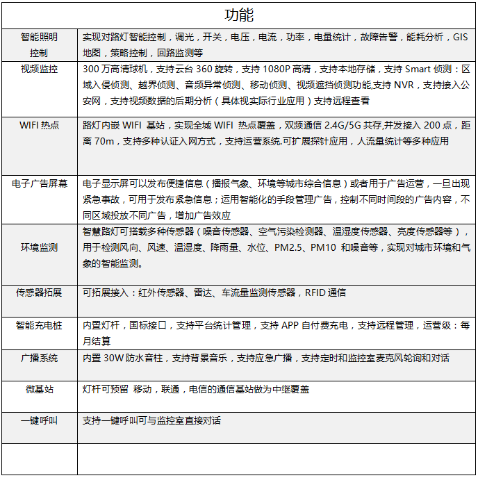 Z10-K9系列的智慧路燈-是依托智慧燈桿和LED路燈,集成WIFI基站、攝像頭、紅外線傳感器、雷達、電子顯示屏、充電樁、環境監測傳感器等,變成一個信息載體,實現數據監控、環保監測、車輛監控、安防監控、燈桿屏、地下管網監控、城市洪澇災害預警、區域噪聲監測、市民應急報警等的綜合型智慧城市信息化管理平臺.
