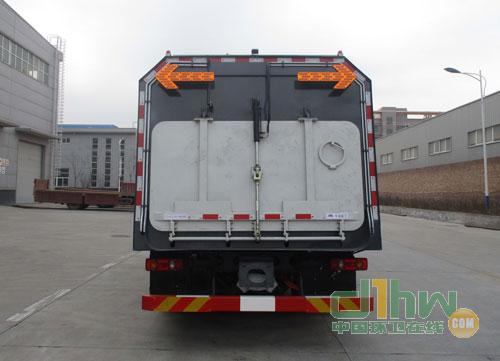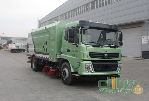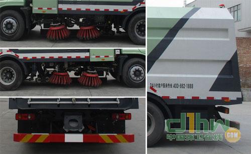 掃路車“中置四盤刷,后置吸嘴”結構布置,副發動機驅動風機及其工作裝置,以吸為主,洗掃結合,濕式除塵,對路面進行清掃作業,采用電液操縱控制,液壓傾翻卸料,具有清掃能力強,清掃寬度大,清掃速度高,吸入粒大,可靠性高,易于操作和維護,作業效率高等特點。