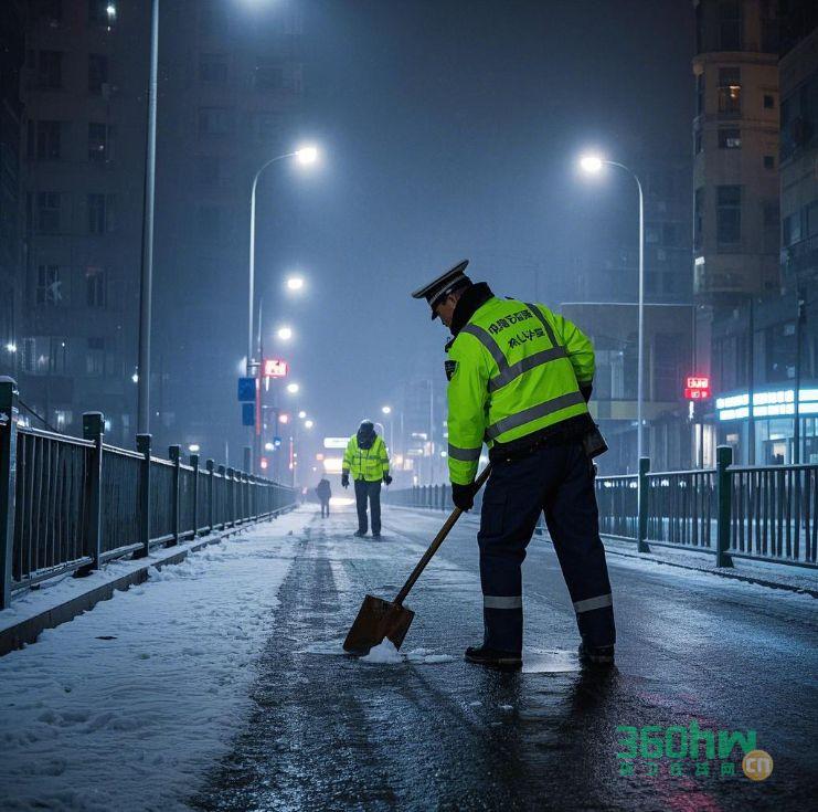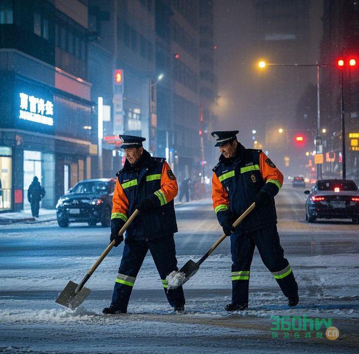 零下 28℃的城市守護:冰雪中,環衛工人的清雪身影