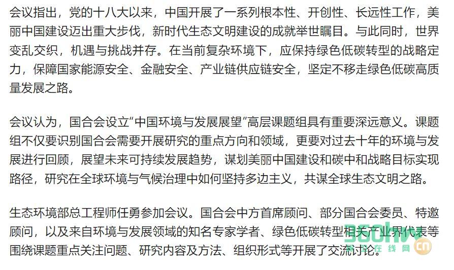 國合會“中國環境與發展展望”高層課題組中方專家研討會在北京召開