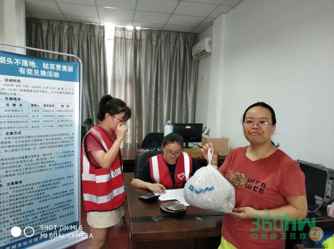 5/7為進一步提高廣大市民的參與積極性,姑蘇區城管委還開展了“煙頭不落地、姑蘇更美麗”有獎兌換活動,在虎殿路、公園路、金門路、長康里設立了四個煙頭有獎兌換點,通過預約后,每周五市民可攜帶撿拾的煙頭和本人身份證到兌換點兌換筆記本、水杯、雨傘等獎品。