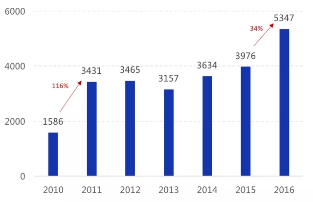 資質企業平均規模較小:2016年我國持危險廢棄物經營許可證的企業數量為2149家,2016年凈增加僅115家,體現出環保系統對新頒發許可證愈發謹慎;平均每家處理量僅不到3萬噸,呈現較強的分散性特征,但單企業處理規模由2014年2.2萬噸/年增加到2016年3.0萬噸/年,未來隨著許可證頒發與復核難度加大,實力弱、技術差的小企業將被淘汰出市場,龍頭擴張,單企業規模繼續擴大。