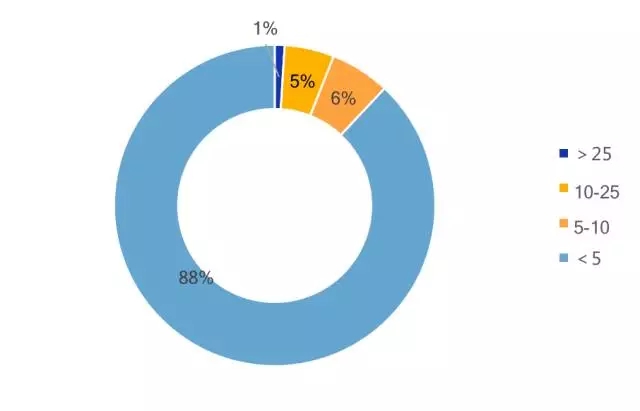弱:大部分工業危廢處理企業技術、資金較弱,處理資質比較單一,這也是危廢企業實際處理比例較低的一大原因。據統計,全國1500多家具有危廢處理資質的企業的處理類別和能力中,90%的企業經許可處置的危險廢物種類都小于10種,而能處理25種以上危廢品類的企業僅占1%。從處理量上來看,處理能力低于50噸/日的企業超八成,處理能力達到1000噸/日的企業僅占0.3%。
