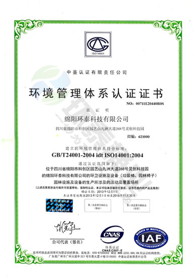 2014年獲得“中鑒認證有限公司”環境管理體系認證證書