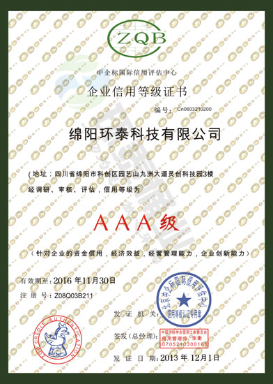 2014年獲得“中國企業信用記錄中心網”AAA誠信認證單位