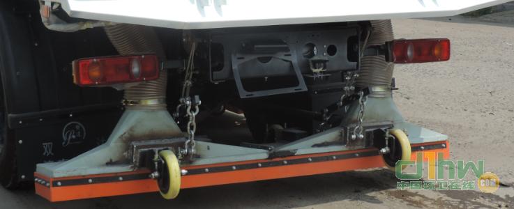 該車主要用于城市道路、廣場以及公園路面清掃;由封閉式箱體、副發動機、風機、掃刷、吸盤等組成;整車長/軸距對應關系(mm):8280/5000,7980/4700,7780/4500;側面防護裝置由工作裝置及部分護欄組成,側面防護裝置材料材質為Q235B,與車架采用螺栓連接,后部工作裝置與后下部防護裝置相干涉,故豁免,后部工作裝置行車時離地高:270mm;隨底盤裝配ABS,ABS型號:3631010-C2000,4460046440;ABS生產廠家:東科克諾爾商用車制動系統(十堰)有限公司,威伯科汽車控制系統(中國)有限公司;選裝水箱在前部獨立式安裝,選裝側面為平面形箱體,后部選裝純吸式吸盤。