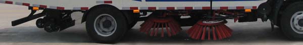 兩側裝有專用作業裝置,后防護材料為Q235,連接方式:用結構連接件固焊在主車后端;.后部防護裝置斷面尺寸(寬×高)60×120(mm).后部防護離地高度:430(mm).隨底盤選裝駕駛室.選裝側部兩掃盤裝置及后部吸盤裝置.ABS型號為3631010-C2000,生產廠家為東科克諾爾商用車制動系統(十堰)有限公司.