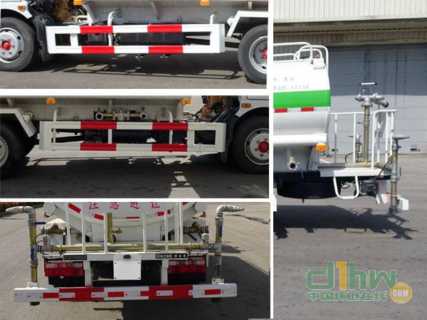 2.前沖(噴)后灑,帶側噴,罐體后帶工作臺,平臺上安裝綠化灑水炮。灑水炮可全方位旋轉,可連續調成直沖狀、大雨、小雨、毛毛雨;